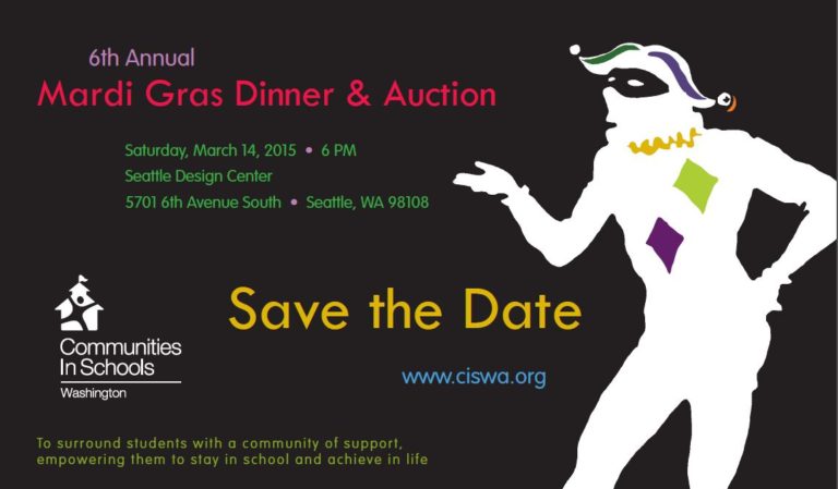 Don’t miss your chance to help CIS of Washington bring more support to students at risk of dropping out of school! Purchase tickets to our 2015 Mardi Gras Dinner and Auction.
